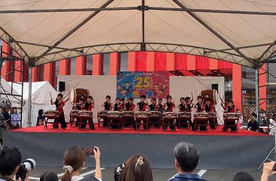 くりえいと宗像25周年感謝祭で和太鼓を披露しました。今年初めてお客さんがいるところで『アイドル』の曲に合わせて太鼓を叩きました。緊張する姿も見られましたが、披露し終わると「まだ太鼓したかったー!」「楽しかったー」と言っていました。