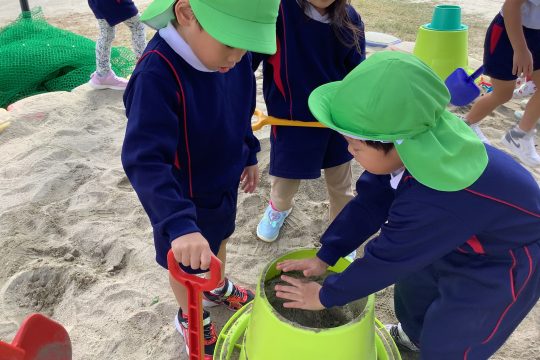 みんなで土を入れていきます。