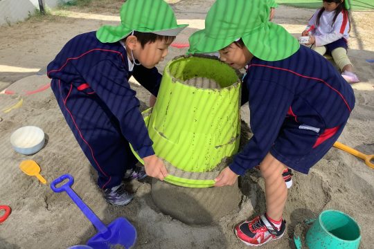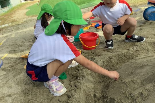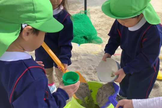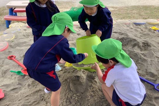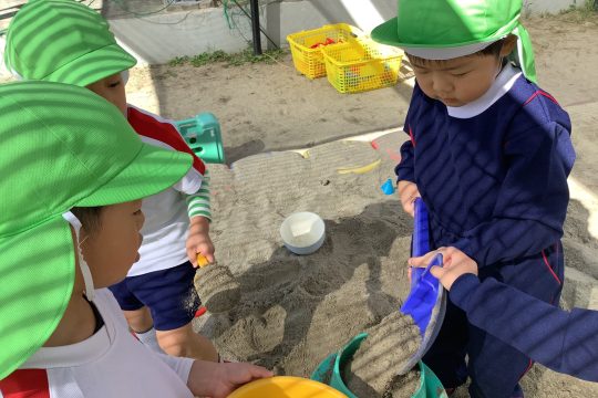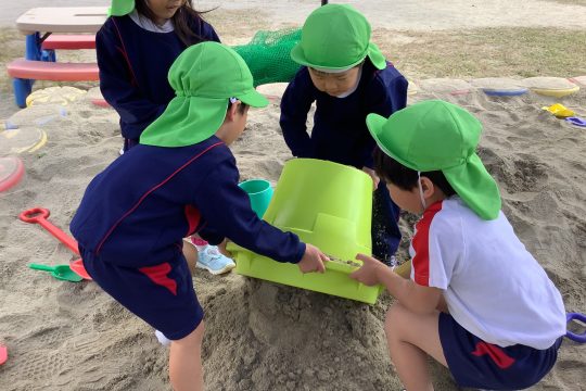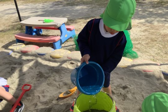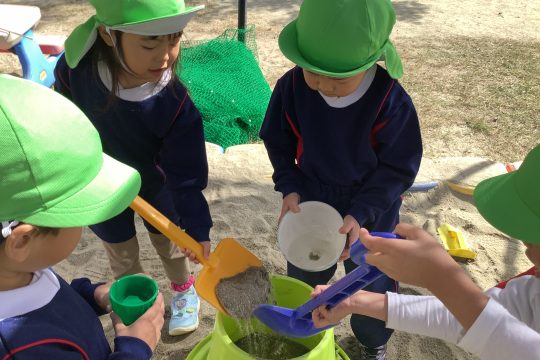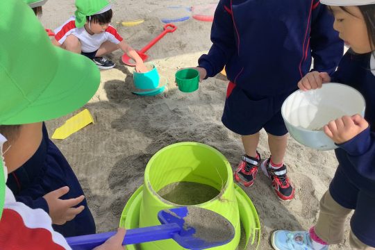一人の子が「水を入れたら固まるんじゃない?」と言い・・・