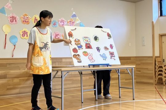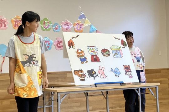 保育士からの出し物では、ガチャガチャが出てくる動物のパネルシアターをしました。
